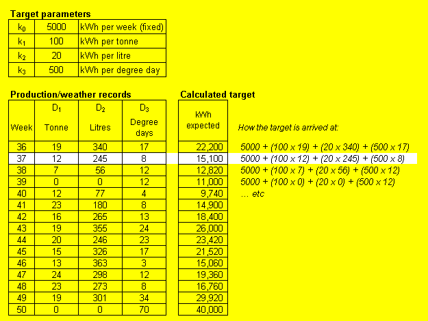 The tabulation below shows how expected or 'target' energy consumption can be estimated from the production